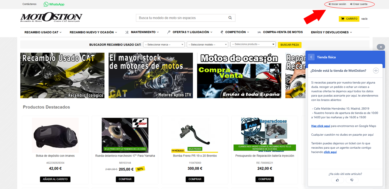 - Acceder a la web de motostion.com e iniciar sesión en tu cuenta de MotOstion.