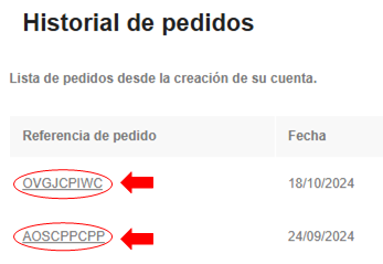 - En el historial de pedidos encontrarás todos los que has realizado, podrás hacer cualquier consulta relacionada y además encontrarás la referencia de tu pedido, solo tienes que incluirlo en el paquete que nos hagas llegar con tu recambio para que sepamos a quién pertenece y a donde mandarlo.